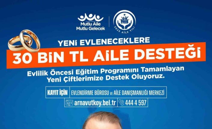 Arnavutköy Belediyesi, yeni evlenecek çiftlere 30 bin TL nakit desteği, ücretsiz nikah hizmeti ve aile danışmanlık hizmeti sunarak, evlilik hayatına sağlam bir başlangıç yapmalarını sağlayacak. Çiftler, bu destekten faydalanmak için Aile Eğitim Programı’na katılım sağlayacak.