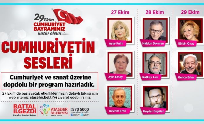 27-29 Ekim tarihleri arasında gerçekleştirilecek “Cumhuriyet’in Sesleri” etkinlik programıyla Genco Erkal, Haldun Dormen, Rutkay Aziz, Haydar Ergülen, Ayşe Kulin, Prof. Devrim Erbil ve Prof. Dr. Ayla Ersöy izleyici karşısına çıkacak. Cumhuriyetin yetiştirdiği değerli sanatçılar, Türkiye’nin sanat tarihi yolculuğunda deneyimlerini paylaşacaklar.