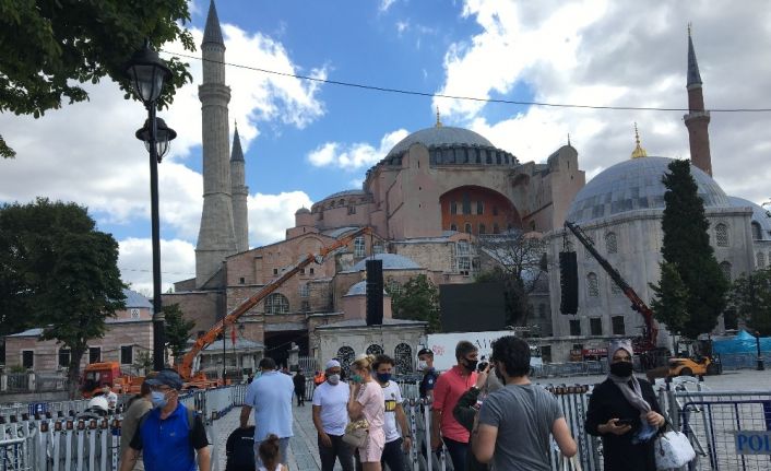 86 yıl aradan sonra kılınan ilk Cuma namazıyla ibadete açılan Ayasofya-i Kebir Cami-i Şerifi’nde yerli ve yabancı turist yoğunluğu yaşanıyor. Avrupa’nın birçok ülkesinden gelen turistler cami içerisine girerek incelemelerde bulundular.