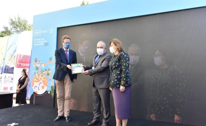 Türkiye Belediyeler Birliği tarafından Avrupa Hareketlilik Haftası kapsamında düzenlenen Bisikletli Ulaşım Fikir ve Proje Uygulama Yarışması’nın ödül töreni, Ankara’da gerçekleştirildi. Belediyeler ödüllerini, Ulaştırma ve Altyapı Bakanı Adil Karaismailoğlu, Cumhurbaşkanlığı Yerel Yönetim Politikaları Kurulu Başkanı Prof. Şükrü Karatepe ve Türkiye Belediyeler Birliği Başkanı Fatma Şahin’den aldı.