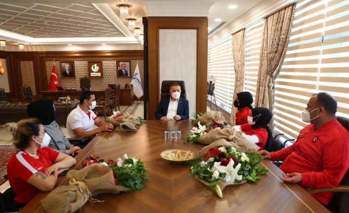 Polonya’da düzenlenen Para Atletizm Avrupa Şampiyonası’nda Türkiye’yi temsil eden Bağcılar Belediyesi’nin engelli milli sporcuları 1 altın, 4 gümüş, ve 2 bronz toplamda 7 madalya ile yurda döndü. Altın kızları makamında ağırlayan Bağcılar Belediye Başkanı Lokman Çağırıcı gurur duyduklarını söyledi.