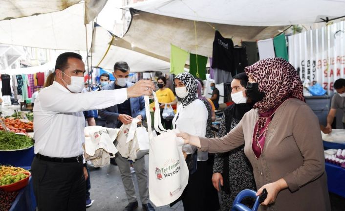 Başkan Yıldız, semt pazarında alışveriş yapan vatandaşlara bez çanta dağıttı