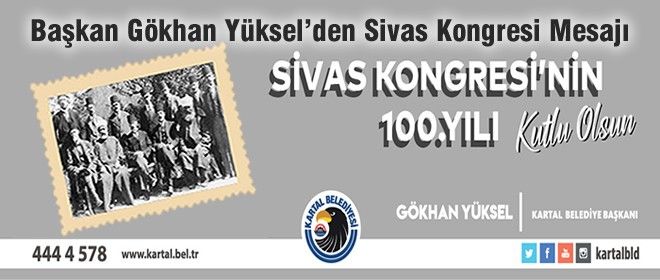 Kartal Belediye Başkanı Gökhan Yüksel, Sivas Kongresi’nin 100. yılı sebebiyle bir mesaj yayınladı.