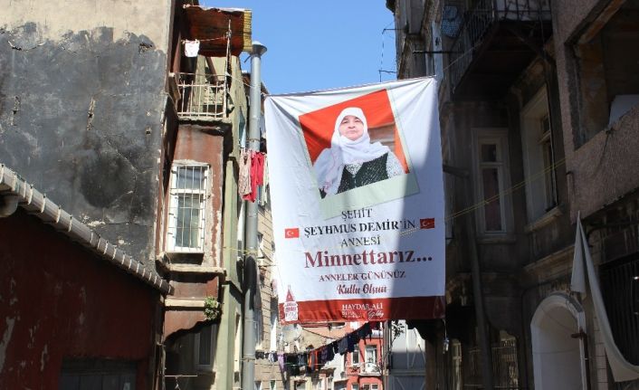 Beyoğlu’nda Anneler Günü’nde şehit annelerinin fotoğraflarının yer aldığı afişler, oturdukları mahallelere asılarak ’Anneler Günü’ kutlandı.