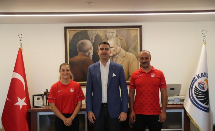 2020 Tokyo Olimpiyat Oyunları’nda gümüş madalya alan Buse Naz Çakıroğlu, Kartal Belediye Başkanı Gökhan Yüksel’i makamında ziyaret etti. Olimpiyat madalyasını Türkiye’ye kazandıran Çakıroğlu’nun ziyareti sırasında Milli Takımlar Antrenörü Nazım Yiğit de hazır bulundu.