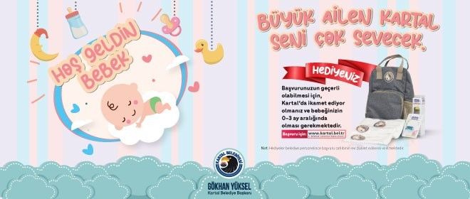 0-3 ay aralığındaki bebekler için hazırlanan paketi almak için, ailelerin https://bit.ly/KartalBelediyesiHosGeldinBebek linkinden başvuruda bulunmaları, doğum ve ikametgâh belgesini Kartal Belediyesi Sosyal Yardım İşleri Müdürlüğü’ne teslim etmeleri yeterli oluyor.