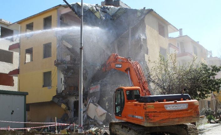 Büyükçekmece’de ağır hasarlı 64 daireli 8 binanın yıkım işlemlerine başlandı