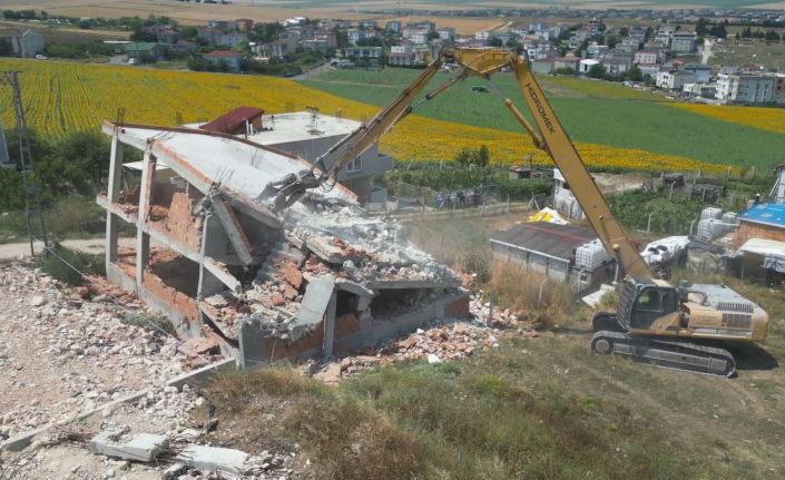Büyükçekmece Türkoba Mahallesi Çayırlar mevkiinde kaçak olarak yapıldığı tespit edilen yapılar belediye ekipleri tarafından yıkıldı.