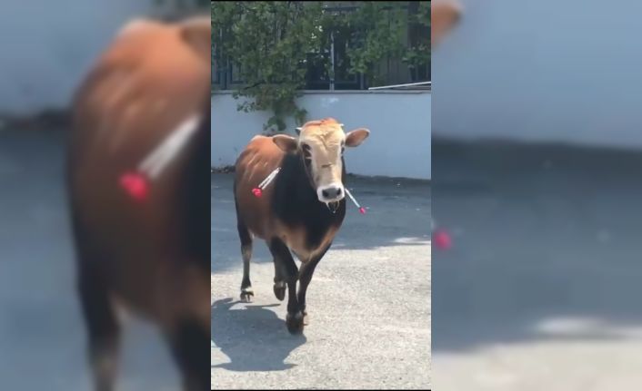 Çekmeköy’de sahibinin elinden kaçan kurbanlık, sakinleştirici iğnelere rağmen sakinleşmedi. Çevredekilerin korkudan yanına yanaşamadığı kurbanlık dana cep telefonu kameralarına yansıdı.