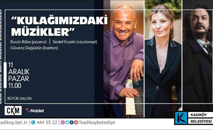 CKM’nin aralık ayı Klasik Batı Müziği konseri 11 Aralık Pazar günü saat 11.00’de. “Kulağımızdaki Müzikler” adlı konserin konukları piyanist Burçin Büke, çellist Sedef Erçetin ve bariton Güvenç Dağüstün triosu olacak. Sanatçılar barok, klasik ve romantik dönemin en tanınmış eserlerinden bir seçkiyle müzikseverlere klasik müzik şöleni sunuyor. Sanatçılar Burçin Büke’nin “Foça Tangosu” eserini de sahnede yorumlayacaklar.