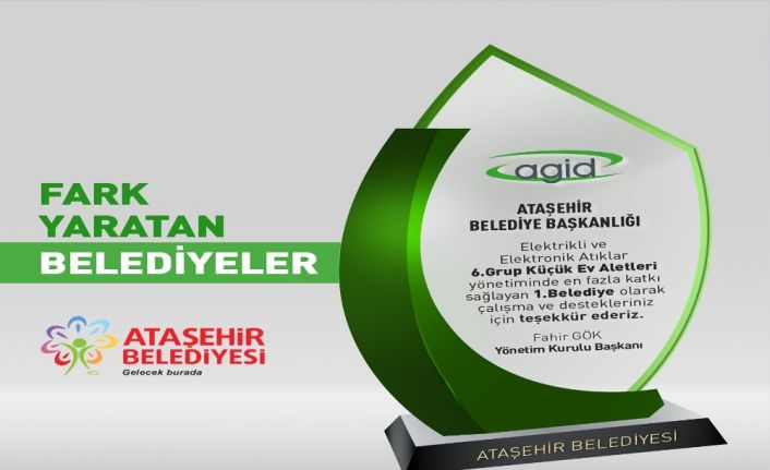 Çevre ve Şehircilik Bakanlığı tarafından, atık elektrikli ve elektronik eşyaların yönetimi konusunda yetkilendirilmiş kuruluş olan Aydınlatma Gereçleri İmalatçıları Derneği (AGİD) ve belediyeler işbirliği ile düzenlenen, e-atık toplama çalışmasına katılan Ataşehir Belediyesi, Elektrikli ve Elektronik Atıklar 6. Grup Küçük Ev Aletleri yönetiminde en fazla katkı sağlayan birinci belediye oldu.