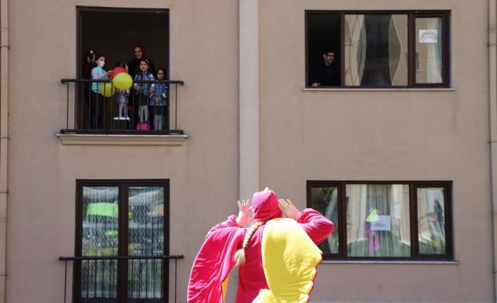 Evlerinden çıkmayan minikler sokakta tiyatro gösterisiyle moral buldular