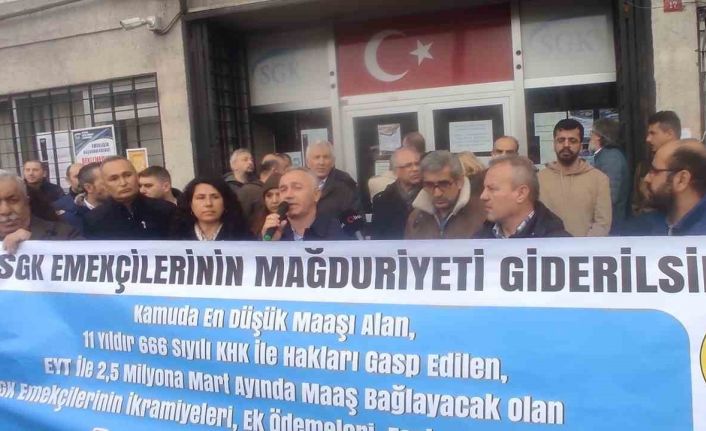 Fatih Sosyal Güvenlik Kurumu Unkapanı Sosyal Güvenlik Merkezi çalışanları Emeklilikte Yaşa Takılanlar (EYT) düzenlemesiyle birlikte iş yükünün arttığı düşüncesiyle iş bırakma eylemi yaptı. Açıklanan EYT ile SGK çalışanlarının iş yükü arttığını söyleyen Büro Emekçileri Sendikası 1 No’lu Şube Başkanı İsak Ateş, “Herkesin yakından takip ettiği gibi emeklilikte yaşa takılanlarla ilgili düzenleme meclisten geçerek yasalaştı. Henüz düzenleme kamuoyuyla paylaşılmadan 1 Ocak’ta hizmet borçlanmasına asgari ücrete gelen zam oranında artış olacağını duyan mağdurlar sosyal güvenlik merkezlerinin önünde uzun kuyruklar oluşturmuş, borçlanma taleplerini gerçekleştirmişlerdi. Bu durum dahi Sosyal Güvenlik Kurumu çalışanlarının iş yükünü iki üç kat arttırırken emeklilik taleplerinin başlaması ile tüm sosyal güvenlik merkezleri önü mahşeri kalabalığa dönüşmüş. Yaşanan yoğunlukla beraber hem vatandaşlar mağdur edilmiş hem de sosyal güvenlik kurumu emekçilerinin iş yükü katmerlenerek artmıştır. Daha da artacağı görülmektedir. Personelle karşılanması çok büyük sıkıntılara neden olacaktır. Sürekli çıkarılan vergi ve prim aflarıyla beraber diğer işlerini de yetiştirmek için zaten gece gündüz demeden çalışan sosyal güvenlik kurumu emekçisi artık yeter diyor. SGK çalışanları açlık sınırındaki bir ücretle 85 milyon vatandaşa hizmet etmektedir. 2012 yılında yayınlanan 666 sayılı kanun hükmünde kararnameyle daha önceden SGK çalışanlarının almakta olduğu yılda 2 asgari tutarındaki ikramiye ile kimi ek ödemeler, sözde eşit işe eşit ücret adı altında kaldırılmıştır” şeklinde konuştu.