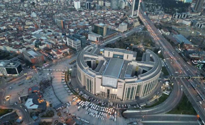İstanbul Adalet Sarayı önünde alınan güvenlik önlemi dron ile görüntülendi.