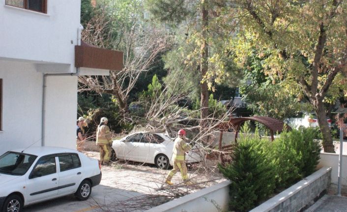 Kadıköy’deki 19 Mayıs Mahallesi İnönü Caddesi’ndeki bir sitenin bahçesine, gece saatlerinde ağaç devrildi. Yan sitenin bahçesindeki ağaç, devrildiği diğer sitenin bahçesinde park halinde bulunan otomobilin üzerine düştü. Otomobilde maddi hasar meydana gelirken durumu sabah saatlerinde fark eden vatandaşlar polise ve itfaiyeye haber verdi. Olay yerine gelen itfaiye ekipleri, devrilen ağacın kaldırılabilmesi için dalları kesti.