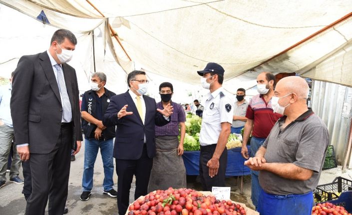 Pazara gelenlere ateş ölçümü yapıldı, pazar girişine dezenfektanlar yerleştirildi, esnafa kolonya dağıtıldı. Maske kullanımı, sosyal mesafe ve hijyen kurallarına uygunluğu denetleyen yetkililer, pazarcı esnafı ve yurttaşları tedbirlere uyulması konusunda uyardı.