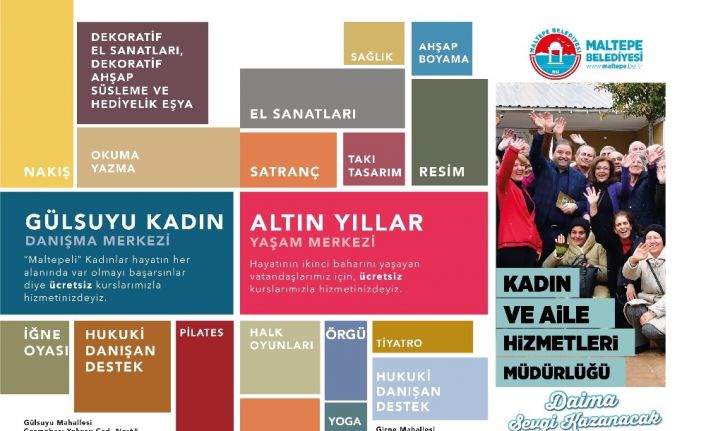 Maltepe Belediyesi kadınlar ve engellilere yönelik hizmetlerine tüm hızıyla devam ediyor. Halk Eğitim Merkezi ile yapılan iş birliği çerçevesinde, belediyeye bağlı 5 merkezde el sanatlarından spora, aşçılıktan pastacılığa kadar çeşitli dallarda açılacak kurslarda eğitim verilecek. Maltepe Belediyesi Kadın ve Aile Hizmetleri Müdürlüğünce, ilçede ikamet eden kadın ve engellilere yönelik kurslar Gülsuyu Kadın Danışma Merkezi, Üreten Engelliler Merkezi, Altın Yıllar Yaşam Merkezi, Fındıklı Kadın Danışma Merkezi ve Maltepe Kadın Girişimcilik Muftağı’nda 15 Eylül’den itibaren başlayacak.