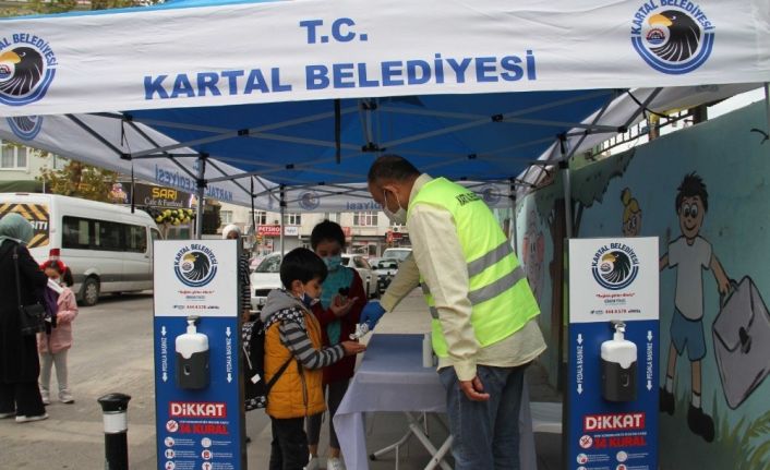2020-2021 eğitim öğretim yılı öncesinde Covid-19 virüsüne karşı alınan tedbirler kapsamında, okulları köşe bucak dezenfekte ederek öğrenciler için hazır hale getiren Kartal Belediyesi, yüz yüze yapılacak ilk ders gününde de öğrencileri yalnız bırakmadı.