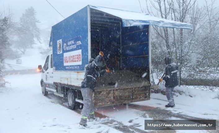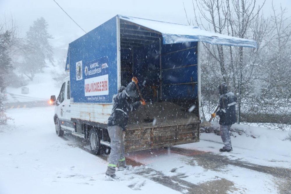 Kartal Belediyesi, İstanbul’u etkisi altına alan kar yağışına karşı ilçe genelinde Perşembe gününden itibaren çalışmalarına kız kesmeden devam ediyor.