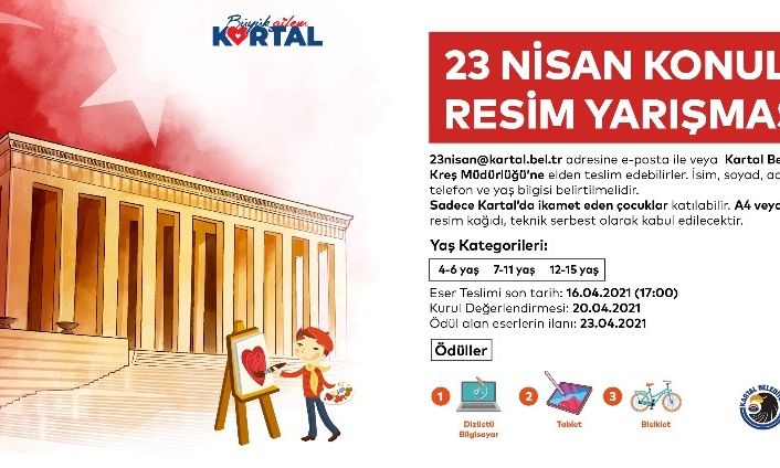 Kartal Belediyesi Kreş Müdürlüğü, Büyük Önder Gazi Mustafa Kemal Atatürk’ün tüm dünya çocuklarına armağan ettiği 23 Nisan Ulusal Egemenlik ve Çocuk Bayramı kapsamında düzenlediği yarışma ile salgın nedeniyle evde kalan ve uzaktan eğitime tabi olan çocukların bayram coşkusundan ve etkinliklerinden mahrum kalmaması için resim ve şiir yarışması düzenliyor.