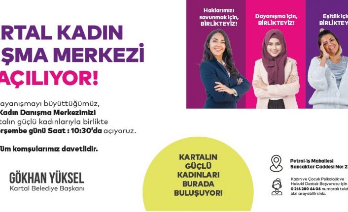 Kartal Belediyesi Kadın ve Aile Hizmetleri Müdürlüğü bünyesinde Kartallı kadın ve çocuklara ihtiyaçları doğrultusunda destek verecek uzman psikolog, pedagog ve sosyologların yanı sıra; hızlı ve etkili şekilde iletişim sağlayacak çeşitli kurum ve üniversitelerden gönüllü destekçileri de içinde barındıracak olan Kadın Danışma Merkezi’nin açılışı, 25 Kasım Perşembe günü Kadına Yönelik Şiddete Karşı Uluslararası Mücadele Günü’nde gerçekleştirilecek.