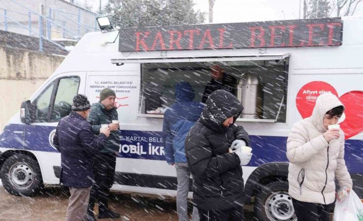Kar yağışına karşı Kartal’da hayatın olumsuz etkilenmemesi için ilçe genelinde çalışmalarına aralıksız devam eden Kartal Belediyesi, bir yandan da ilçenin yoğun olarak kullanılan güzergâhlarında, soğuk ve karlı hava nedeniyle zorluk çeken vatandaşların bir nebze olsun içlerini ısıtmak için, ‘Mobil İkram Aracı’ ile sıcak çorba ve çay ikramında bulunuyor.