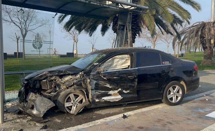 Kartal Sahili’nde sürücüsünün direksiyon hakimiyetini kaybettiği aracın durağa daldığı kazada 2 yolcu hafif yaralanırken, araçta büyük çapta maddi hasar meydana geldi.