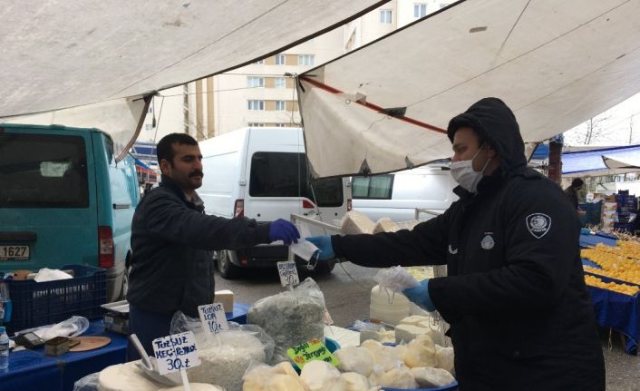 Pazarda ‘ateş ölçerli’ önlem alındı