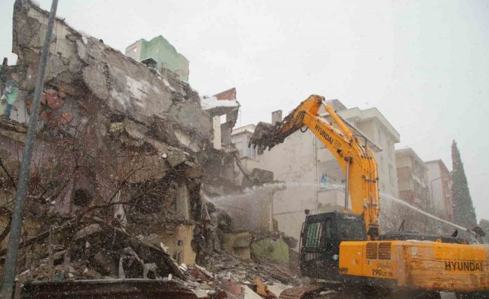 Afet işleri müdürlüğü ekipleri yıkım anında hazır bulunuyor