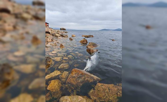 Kınalıada’da sabah saatlerinde bir yunus, ölü olarak kıyıya vurdu.