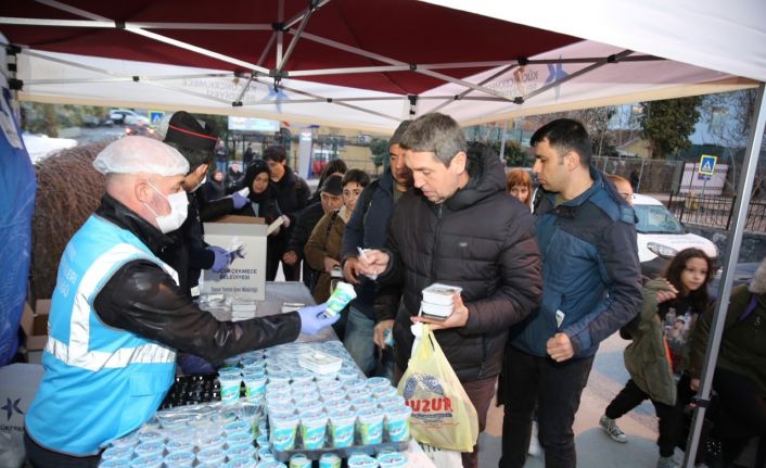 Belediye, deprem bölgesi Hatay Samandağ’da Aşevi ve Oyun Sokağı’yla desteğini sürdürüyor. Günlük 5 bin kişiye sıcak yemek ikramı yapılan aşevinden vatandaşlara iftar yemeği de veriliyor.