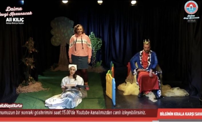 Daha sonra yayınlanan “Bilginin Krala Karşı Savaşı” isimli oyunla minikler evlerinde eğitici bir oyun izledi. Şirin Gedikli’nin yazıp yönettiği oyunda, masallar ülkesinde yaşayan, halkına ve çocuklara kötü davranan kral ve ona karşı mücadele veren Bilge, Bilgin ve arkadaşlarının öyküsü anlatıldı. Belediye önümüzdeki günlerde Youtube üzerinden öğrencilere dönük ders anlatmayı da planlıyor.
