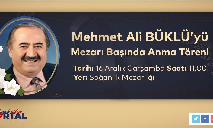 Kartal Belediyesi, Kartal’da 1975-1980 ve 1989-1994 yılları arasında Belediye Başkanlığı görevini yapan Mehmet Ali Büklü için 16 Aralık 2020 Çarşamba günü saat 11.00’da mezarı başında bir anma töreni düzenleyecek. Pandemi koşulları nedeni ile anma töreni, kısıtlı sayıda kişi ile sınırlı tutulacak.