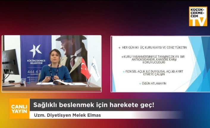 Pandemi döneminde de vatandaşları bilgilendirmeye devam eden Küçükçekmece Belediyesi video içerik kanalı Küçükçekmecem TV’ye konuk olan Diyetisyen Melek Elmas, Küçükçekmecelilere sağlıklı beslenme hakkında bilgiler verdi.