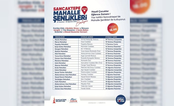 Sancaktepe Belediyesi tarafından düzenlenen mahalle şenlikleri başladı. 9 Temmuz tarihinde Meclis Mahallesi’nde gerçekleşen ve mahalle halkının yoğun katılım gösterdiği şenliklerde yapılan gösteriler, izleyicilere keyifli anlar yaşattı. Şenliklerde illüzyon gösterileri, zumba kids, bubble şov, jonklör ve palyaço gösterileri, başta çocuklar olmak üzere katılımcılar tarafından büyük ilgiyle izlendi. Çeşitli ikramların olduğu şenliklerde sahne gösterilerinin ardından düzenlenen açık hava sinemasında vatandaşlar keyifli zaman geçirdi.