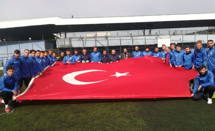 Antrenman sonrasında teknik ekip ve futbolcular Türk bayrağı ile objektiflere poz vererek Mehmetçiklere desteklerini gönderdi.