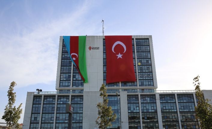 Ümraniye Belediyesi, Azerbaycan’a destek için belediye binasına metrelerce büyüklükte Azerbaycan ve Türk bayrağı astı. Türk ve Azerbaycan bayrağını yan yana gören vatandaşlar, duygu dolu anlar yaşadı.