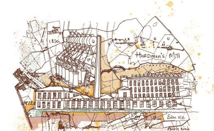 İEÜ Tekstil ve Moda Tasarım Bölümü Öğretim Görevlisi Angela Burns da, Kuzey İrlanda’da bulunan iki eski fabrikanın illüstrasyonu ile sergide yer aldığını söyledi. Burns, “Bu çalışmamda çürüyen bu yapıları, bulundukları yerin tarihi haritalarıyla birleştirdim. Dijital teknikler kullanarak geçmişi ve bugünü bir bütün olarak yeniden tasarladım” diye konuştu.