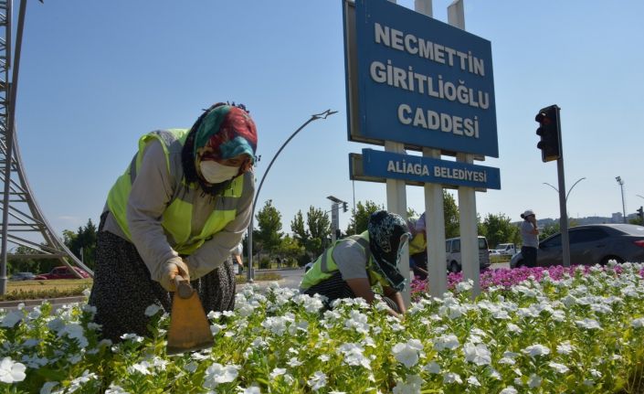 Aliağa Belediyesi Park ve Bahçeler Müdürlüğüne bağlı ekipler cadde, sokak, kavşak, park ve refüjlere diktikleri rengarenk çiçeklerle kente dört mevsim baharı yaşatıyor. Özellikle kadın istihdamıyla güçlendirilmiş park ve bahçeler müdürlüğü, son 2 aylık dönem içinde yaklaşık 750 bin adet yer örtücü bitki ile 150 bin adet mevsimlik çiçek dikimi yaparak kış aylarında da mevcut olan estetik görüntüyü tazeledi.