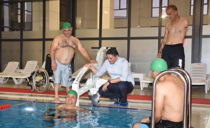 Engelli vatandaşların havuza giriş ve çıkışlarında büyük kolaylık sağlayacak olan havuz liftinin ilk kullanımını da Aliağa Belediye Başkanı Serkan Acar, Aliağa Engelliler Rehabilitasyon Derneği yönetim kurulu üyeleri ile birlikte yaptı.