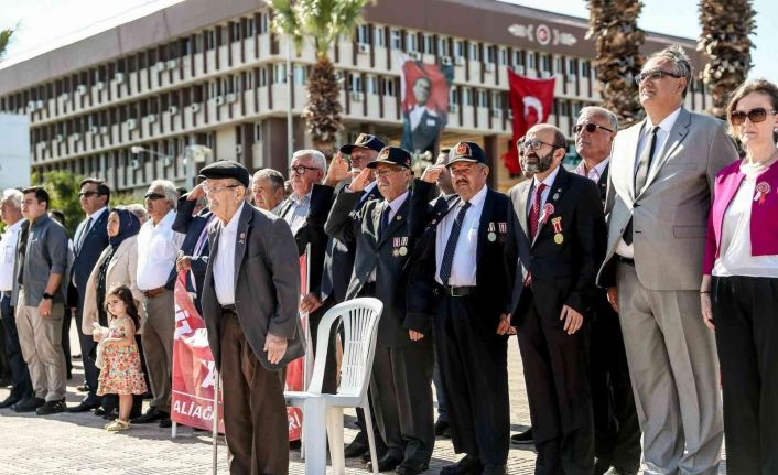 Aliağa Kaymakamlığı tarafından Cumhuriyet Meydanı’nda gerçekleştirilen törene Aliağa Kaymakamı Zekeriya Güney, Aliağa Belediye Başkanı Serkan Acar, Garnizon Komutan Vekili Oktay Bingöl, Aliağa Cumhuriyet Başsavcısı Mehmet İmir, kurum müdürleri, siyasi parti yöneticileri, sivil toplum kuruluşlarının temsilcileri, şehit aileleri, gaziler, öğretmenler, öğrenciler ve vatandaşlar katıldı. Tören, Cumhuriyet Meydanında kaymakamlık, garnizon komutanlığı, belediye başkanlığı ve gazilerin Atatürk büstüne çelenklerini sunması ile başladı. Günün anlam ve önemine ilişkin konuşmayı Gazi İslam Doğan Kılıç yaptı. Gaziler Günü’nün 101. yıl dönümünü kutlamanın gururunu yaşadıklarını belirten Kılıç, “Asil Türk milletinin bağrından çıkmış, şanlı, şerefli Türk ordusu, dün olduğu gibi bugün ve yarın da vatanımızın bölünmez bütünlüğünün en büyük güvencesi olmayı sürdürecektir. İnanıyoruz ki, kan dökülerek vatan olan bu topraklar bugüne kadar olduğu gibi bundan sonra da Türk milleti tarafından en kutsal emanet olarak korunacaktır” dedi.