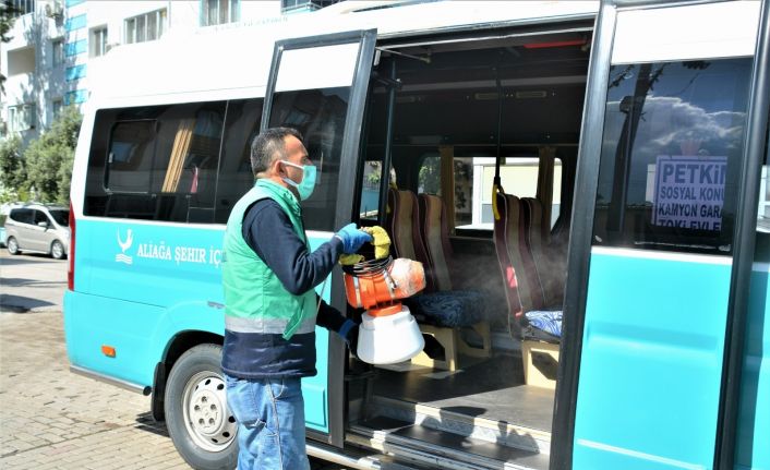 Aliağa Belediyesi Park ve Bahçeler Müdürlüğü bünyesinde görev yapan hijyen ekibi, kent genelinde; dolmuş, dolmuş durağı, bank, park, cami, eczane, okul ve hastane gibi vatandaşların ortak kullanım alanlarında dezenfekte çalışmalarına devam ediyor. Tüm kamu binaları da sık aralıklarla özel bir solüsyonla dezenfekte edilerek, vatandaşlara sağlıklı ortamda hizmet verilmesi sağlanıyor.