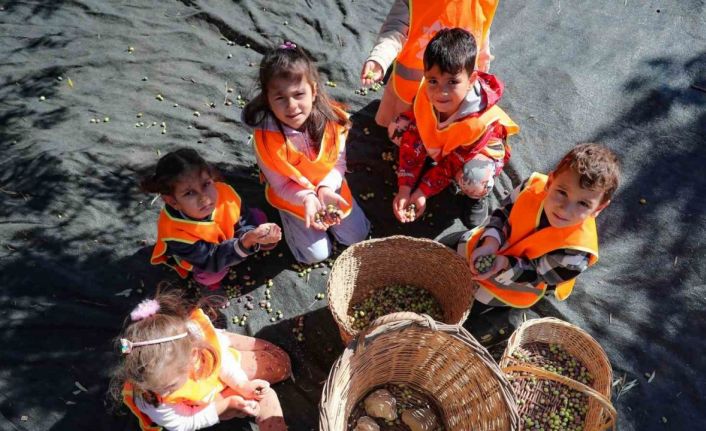 Aliağalı minik öğrenciler Şakran’da zeytin hasadı yaptı
