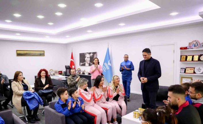 Aliağa Belediye Başkanı Serkan Acar, katıldıkları yarışmalardan madalyalar ile dönen Aliağa Gençlik Merkezi Spor Kulübünün minik yüzücülerini makamında misafir etti.