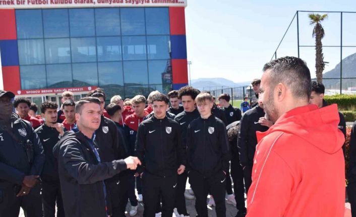 Kuşadası’nda kamp yapan iki takım, çalışmalarının bir bölümünü Metin Oktay Yerleşkesi’nde gerçekleştirdi. Tesisleri gezen her iki takımın teknik heyeti ve futbolcular, Metin Oktay Yerleşkesi’ni çok beğendiklerini dile getirdi. Altınordu Futbol Akademisi (ALFA) İdari Direktörü Ahmet Furkan Can tarafından her iki kulübün yetkililerine isimleri yazılı forma hediye takdim edildi.