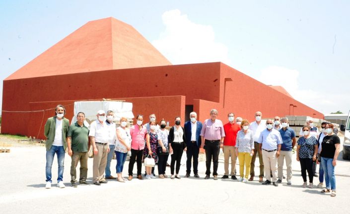Balçova Belediye Başkanı Fatma Çalkaya, belediye meclis üyeleri ve Alevi Bektaşi Derneği yönetim kurulu üyeleri ile birlikte yapımı tamamlanma noktasına gelen cemevinde incelemelerde bulundu.