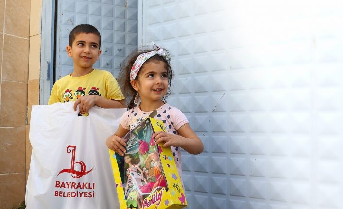 Bayraklı Belediyesi, düzenli olarak yapılan sosyal yardımlara bir yenisini daha ekleyerek Ramazan Bayramı dolayısıyla Bayraklılı çocuklara hediyeler dağıttı. Titizlikle belirlenen dar gelirli ailelerin evlerini ziyaret eden ekipler, bayramlık kıyafetler ve oyuncak paketleriyle minikleri sevindirdi. Yaş gruplarına göre ayrılan birbirinden güzel kıyafetleri ve oyuncakları tek tek paketleyen Sosyal Yardım İşleri Müdürlüğü ekipleri bayram öncesi çocuklara hediyelerini ulaştırırken, miniklerin mutluluğu görülmeye değerdi.