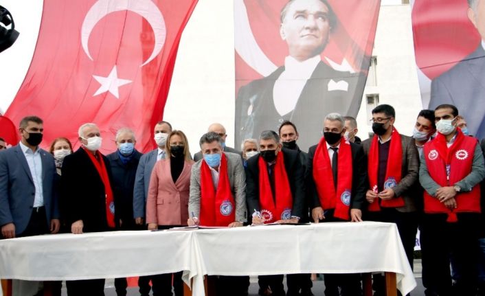 Bayraklı Belediyesi ile DİSK Genel-İş İzmir 6 No’lu Şubesi arasında, bin 270 işçiyi kapsayan toplu iş sözleşmesi düzenlenen törenle imzalanırken, imzalanan sözleşmeyle en düşük işçi maaşı 5 bin 200 liraya çıktı.