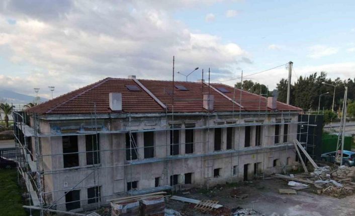 BAYRAKLI BELEDİYESİ, ANA HİZMET BİNASI BAHÇESİNDE YER ALAN TARİHİ ÜÇÜZ BİNAYI ASLINA UYGUN ŞEKİLDE RESTORE EDİYOR. ÇALIŞMALARDA SONA GELİNEN BİNANIN YÜZDE 80’İ TAMAMLANDI.