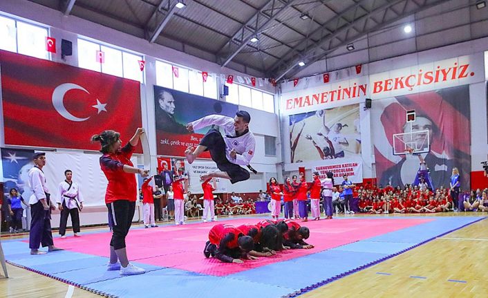 Mustafa Kemal Spor Salonu’nda düzenlenen yaz okulları açılış törenine, 14 farklı branşta spor yapan bine yakın sporcu ve aileleri katıldı. Bale, jimnastik, tekvando, kick boks, karate, güreş, basketbol takımları ile özel gereksinimli sporcular, gösterileriyle izleyenlerin beğenisini kazandı. Renkli görüntülere sahne olan törende; güreşten 32, jimnastikten 16, atletizmden 33, Muay Thai’den 2, Kick Boks’tan 6, Badminton’dan 4, tekvandodan 18 ve özel gereksinimli 16 olmak üzere toplam 127 başarılı sporcu ile voleybol, futbol ve basketbol takımlarına ödüller verildi.